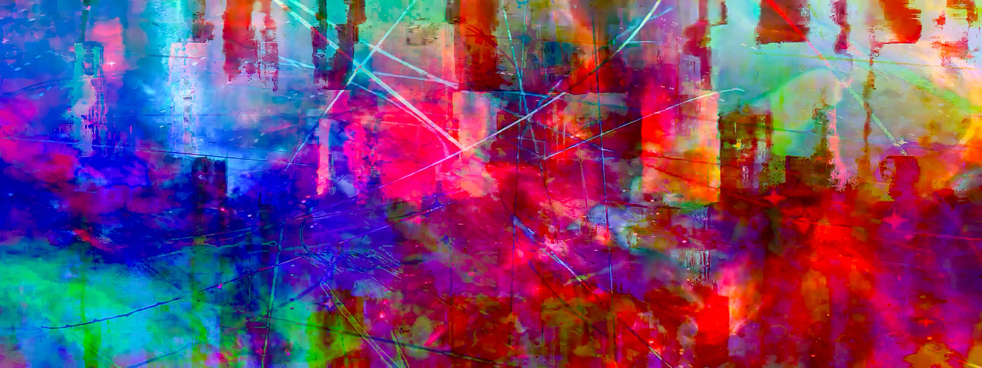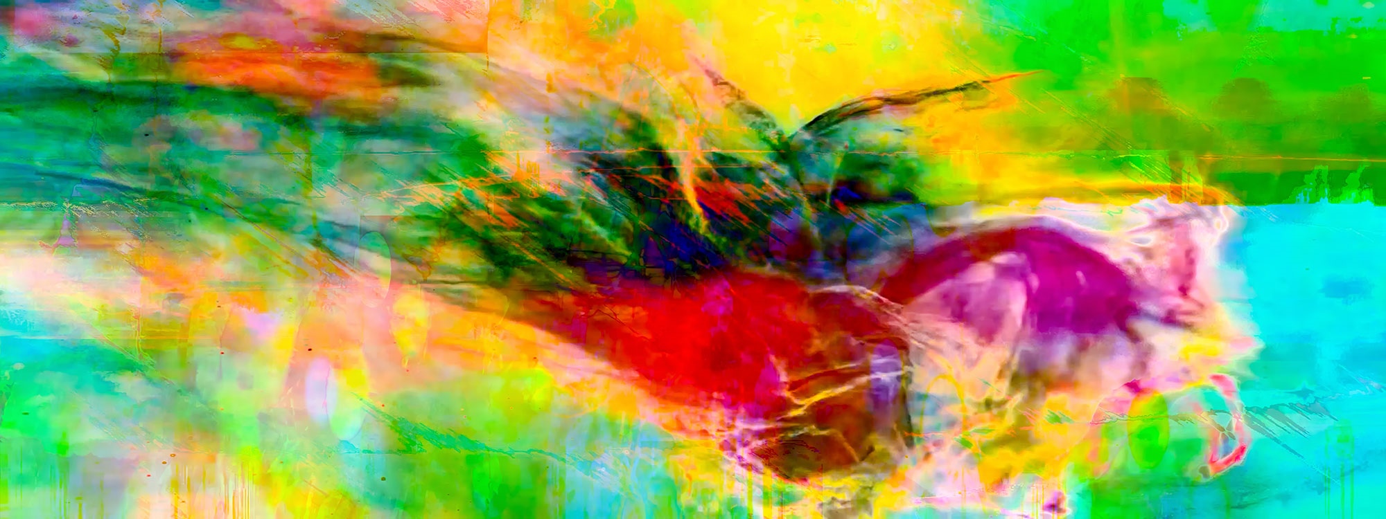 The image series evolves from video projections presented in Neo-Tango milongas, where the interplay with music creates an intense, immersive dance experience. The video sequences are shaped through generative, mathematical, and AI-assisted processes, before unfolding further into independent works of digital painting that open abstract spaces of color and form.